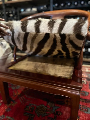 Gilded Medallion Chairs with Custom Zebra Hide Cushions, seat under cushions is also gilded, gold medallion inlaid in the back of each.